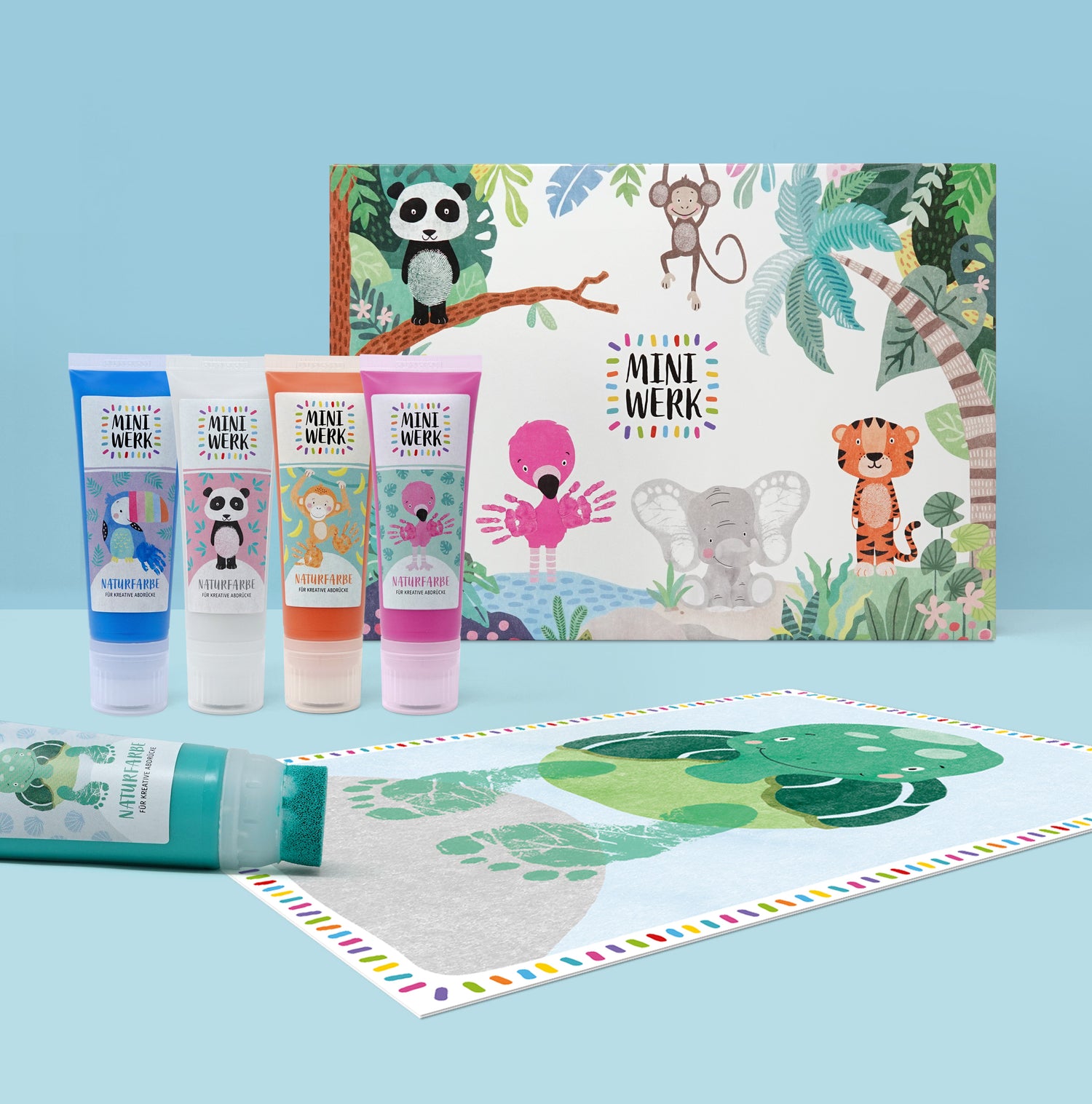 Mit unseren Abdrucksets können nicht nur Erinnerungen festhalten werden, sondern auch viele weitere sinnliche Erfahrungen mit Farbe gemacht werden.