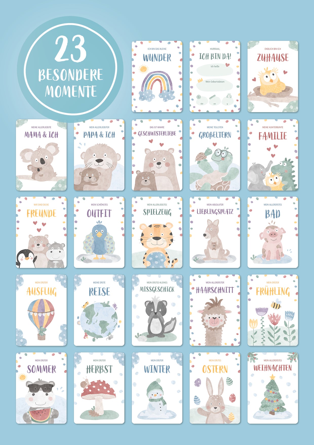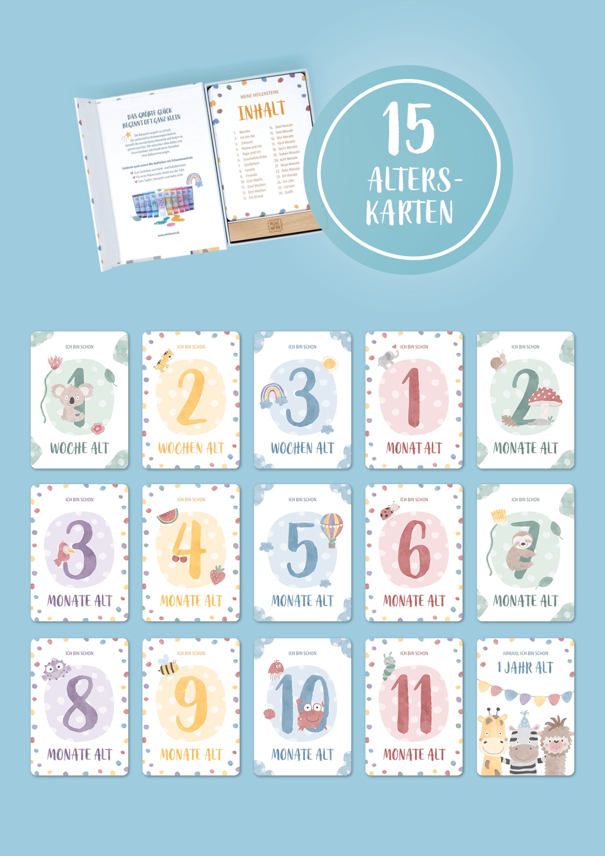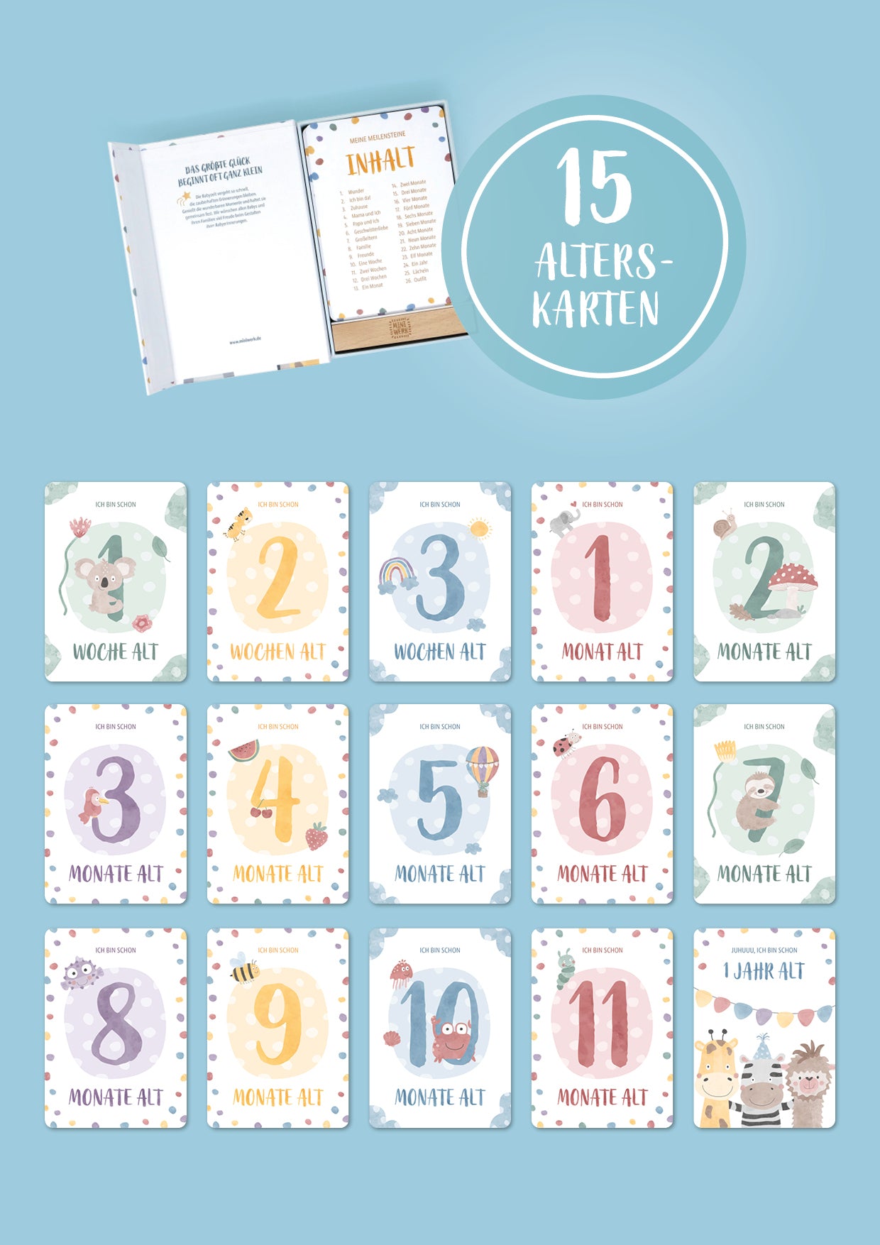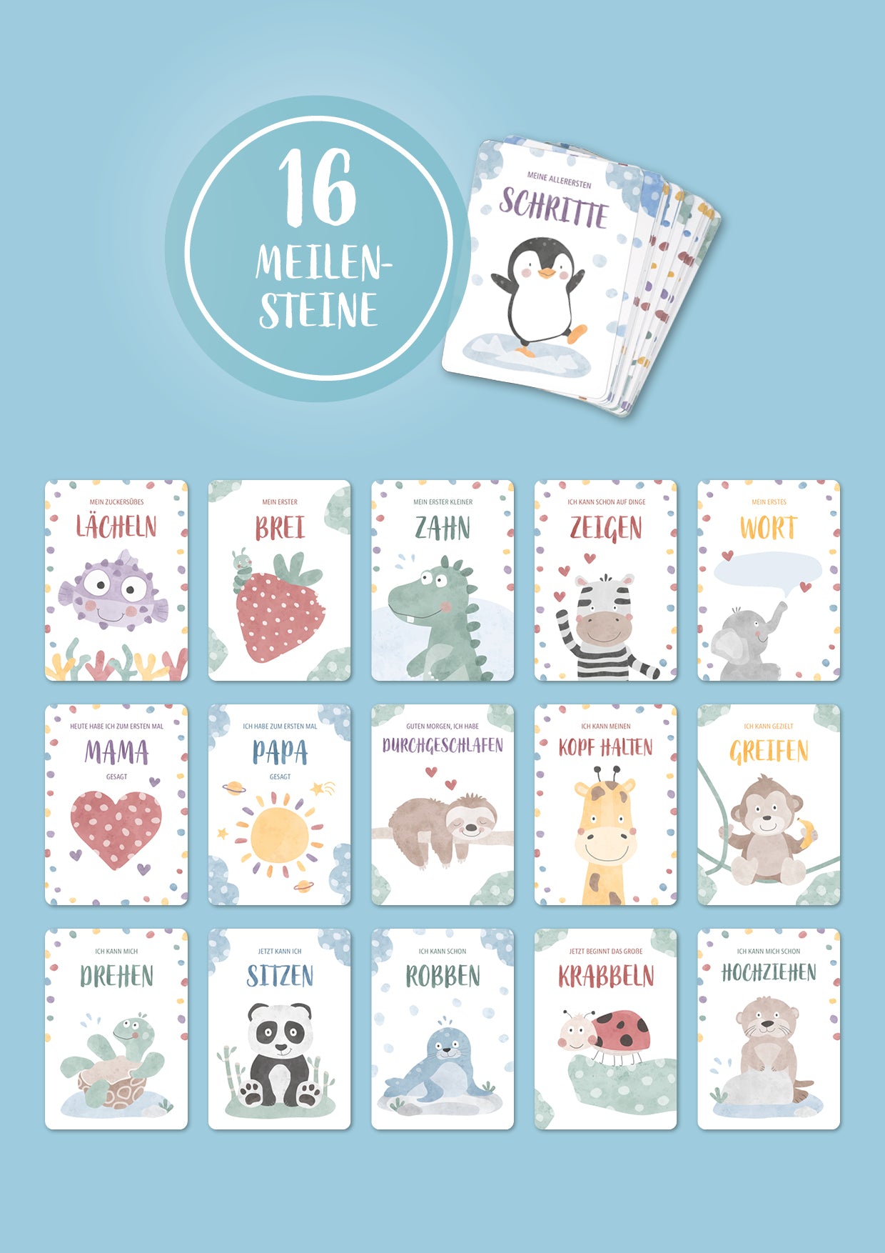 Das erste Babyjahr hat etwas Magisches. Unsere liebevoll gestalteten Baby Meilensteinkarten sind der perfekte Begleiter um alle wichtigen Meilensteine, wertvolle Erinnerungen und spannende Momenten festzuhalten und unvergesslich zu machen.